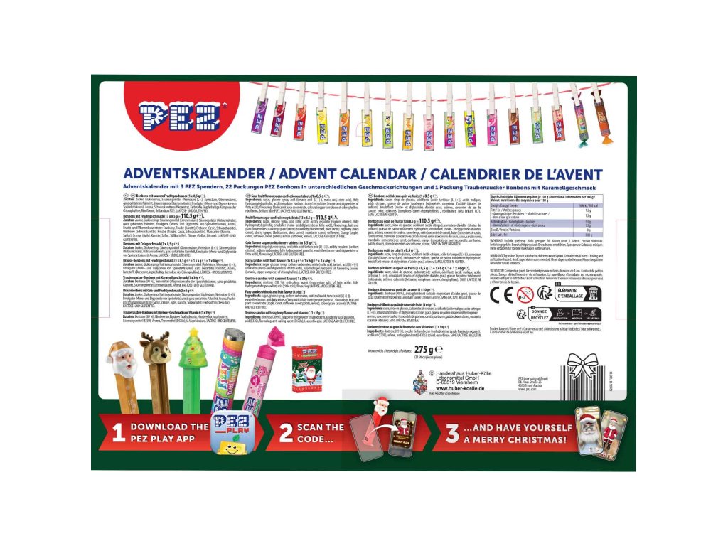 Zažijte sladké kouzlo adventu s adventním kalendářem PEZ! Tento speciální kalendář obsahuje 5 dávkovačů PEZ ve svátečním