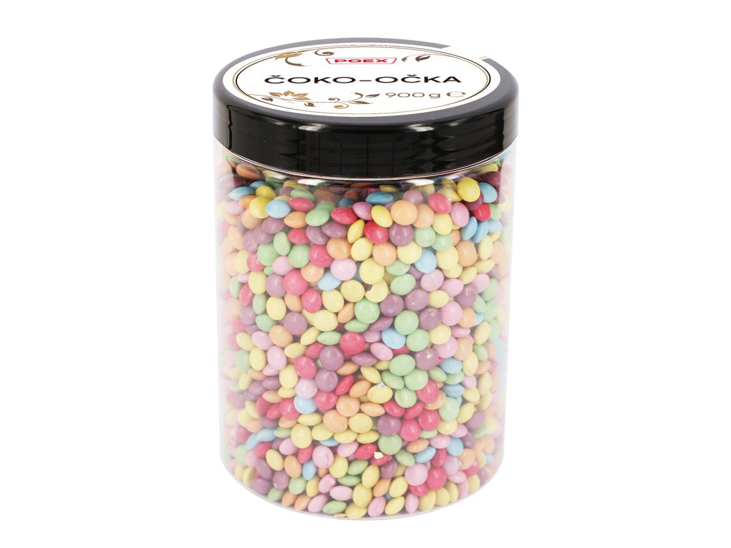 Směs baravného dražé z mlečné čokolády v cukrové krustě.