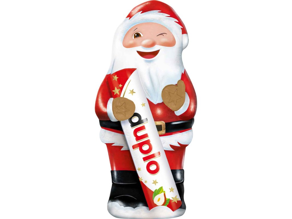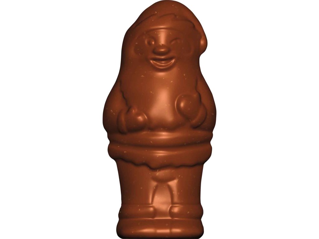 Vtipně navržený Santa Claus je vyroben ze smetanové mléčné čokolády, která je díky přidání mletých lískových oříšků