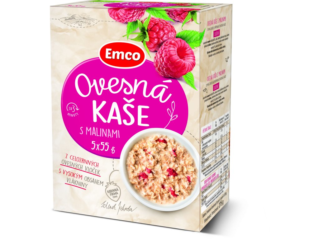 Emco Kaše ovesná s malinami 5 x 55 g