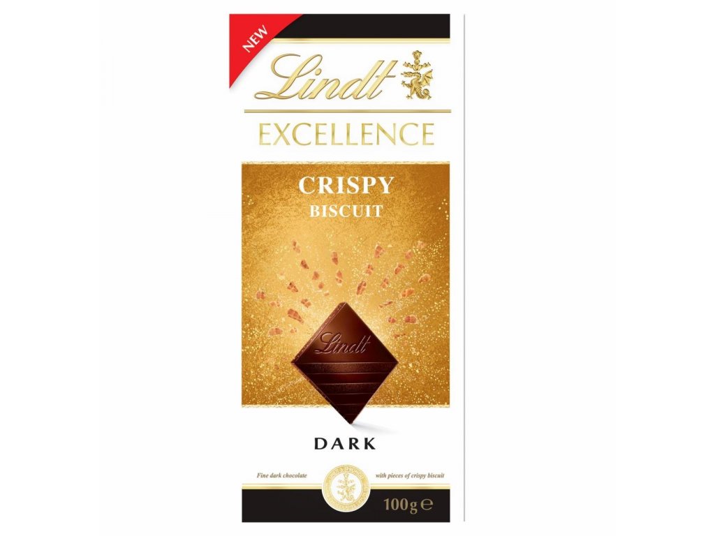 Hořká čokoláda s křupavými kousky sušenky (8%).
