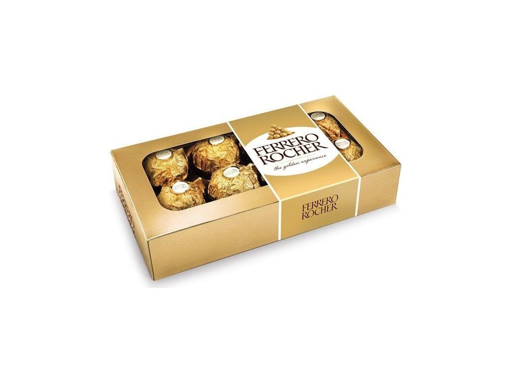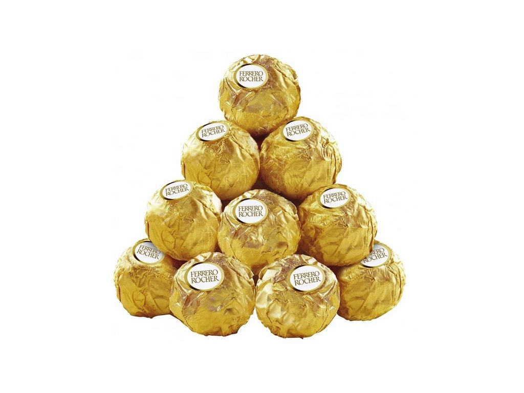 Každá kulička Ferrero Rocher je složena z jemné mléčné čokolády, lískového oříšku a krému s nasekanými oříšky.