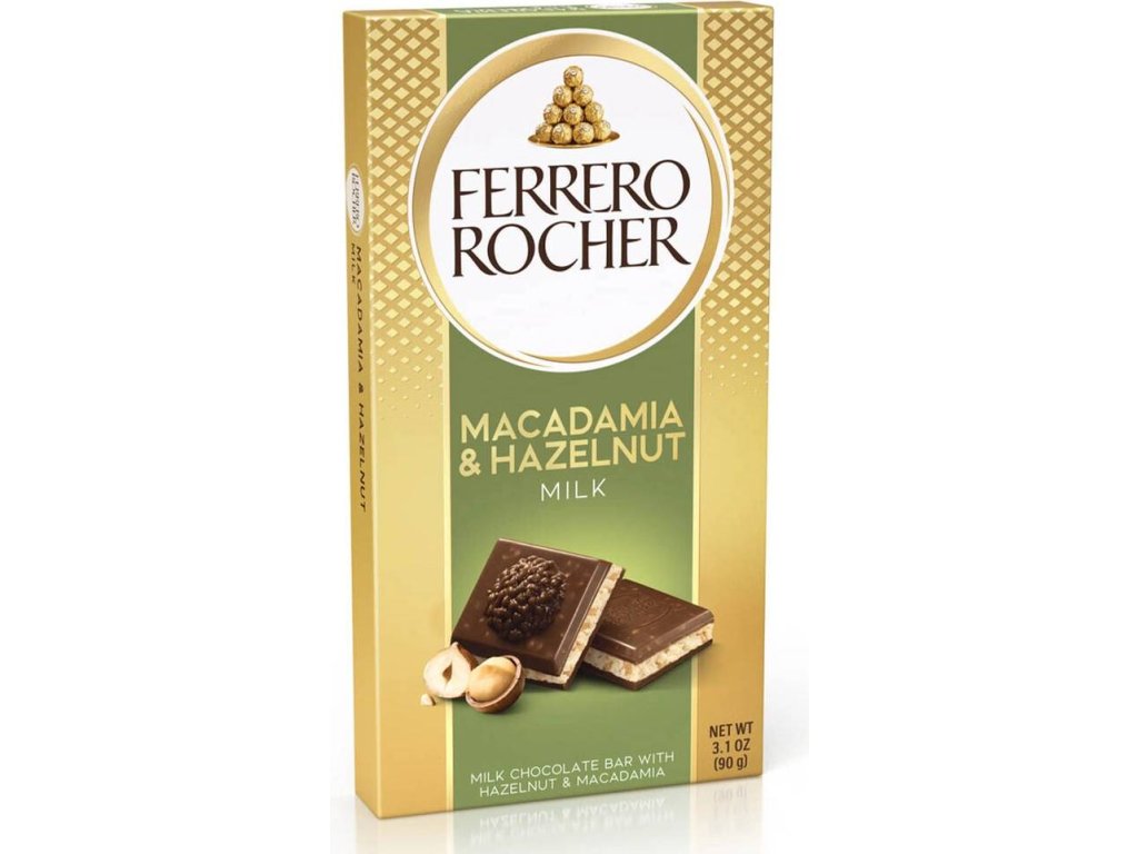 - Složení: cukr, kakaové máslo, sušené plnotučné MLÉKO (10,5 %), LÍSKOVÉ OŘECHY (9,5 %), kakaová hmota, palmový olej, sušené odstředěné MLÉKO (6,5 %), MAKADAMIE (3 %), bezvodý MLÉČNÝ tuk, emulgátor: lecitiny (SÓJOVÉ); aromata, jedlá sůl. Obsah kakaové sušiny nejméně 25,5 %.