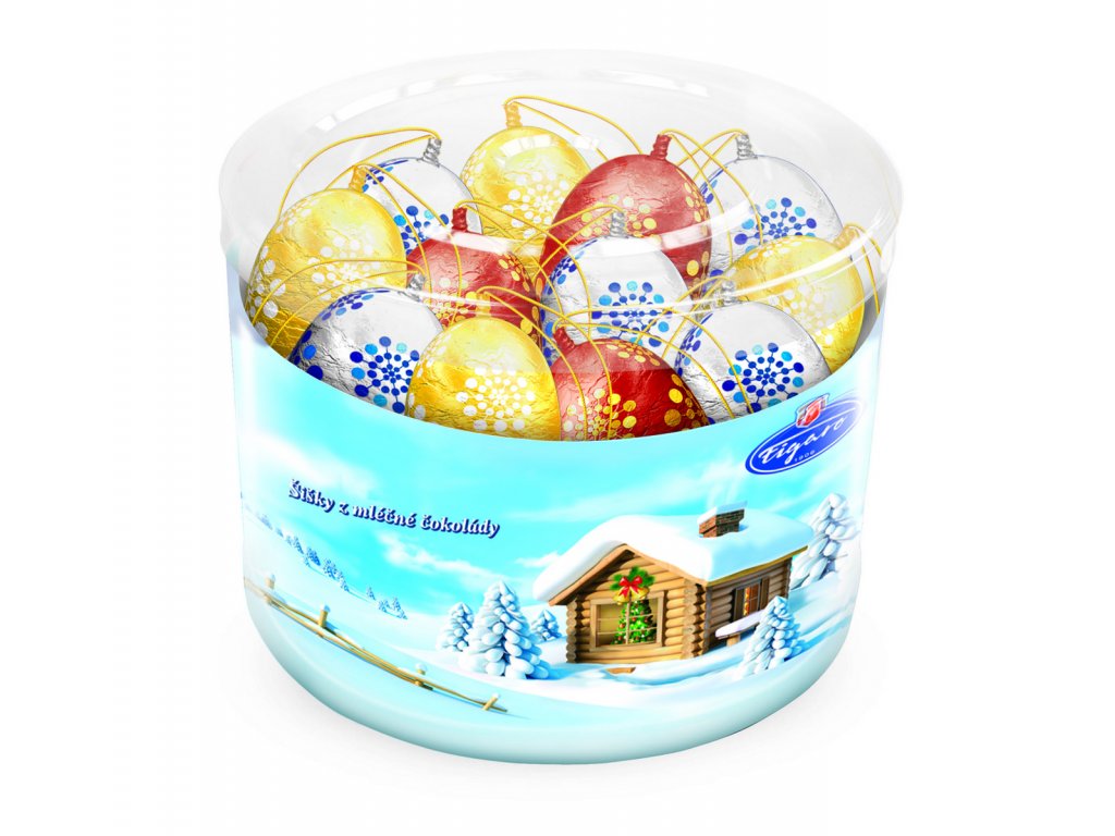 Složení: cukr, kakaové máslo, sušené plnotučné mléko 15%, kakaová hmota, emulgátory (E442, E476), přírodní vanilkové aroma.