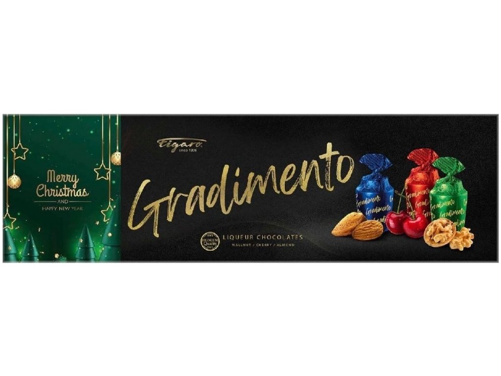 Složení Višeň: cukr, kakaová hmota, glukózový sirup, alkohol 6,4%, kakaové máslo, emulgátory (amonné soli fosfátových kyselin, polyglycerylpolyricinoleát), kyselina (kyselina citronová), višňový prášek 0,1% (maltidextrin, višňový koncentrát 30%), přírodní vanilkové aroma, aroma, zahušťovadlo (pektiny). Hořká čokoláda: Kakaová sušina nejméně 47%. Může obsahovat mléko, vejce, sóju, obiloviny obsahující lepek a skořápkové plody.