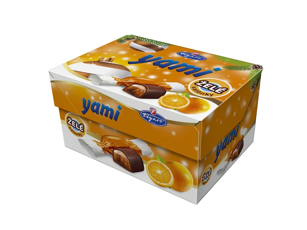 Pektinové želé salonky (78%) v hořké čokoládě s kandovanou pomerančovou kůrou. Velikost balení: 0.45kg Složení Cukr, Hořká čokoláda 22% (cukr, kakaová hmota, kakaové máslo, emulgátory: E442, E476, přírodní aroma vanilkové), Sirup glukózový, Kůra kandovaná pomerančová 11% (pomerančová kůra 57%, glukóza kyselina citrónová), Želírující látka (pektin), Regulátor kyselosti (kyselina citrónová, citrany sodné), Přírodní pomerančové aroma, Hořká čokoláda: kakaová sušina minimálně 47% Informace o alergenech Může obsahovat mléko. Čistý obsah 450g ℮
