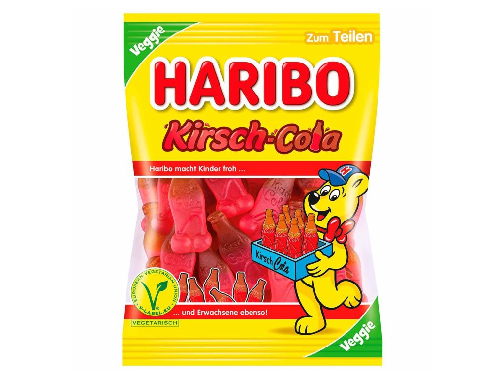 Vynikající želé bonbóny Haribo s příchutí třešňové coly ve vegetariánské verzi.