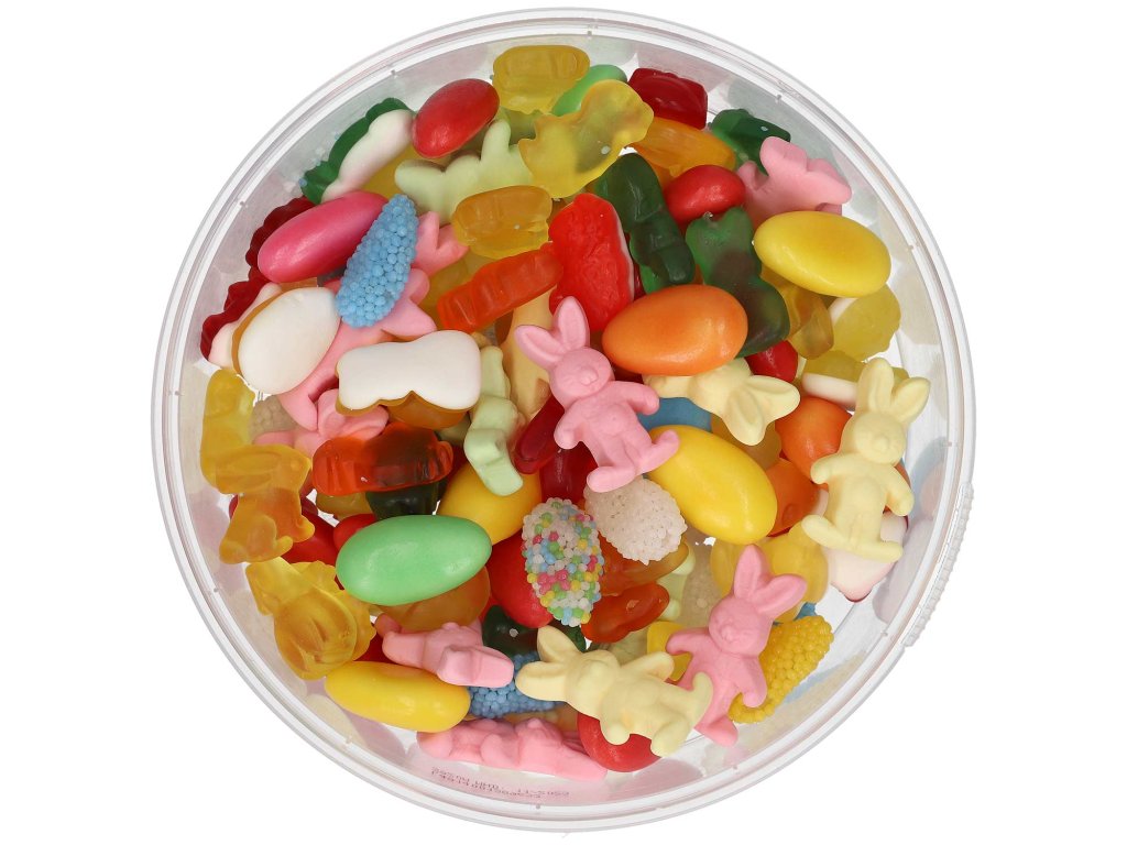 Velikonoční směs ovocných bonbonů, částečně s marshmallow