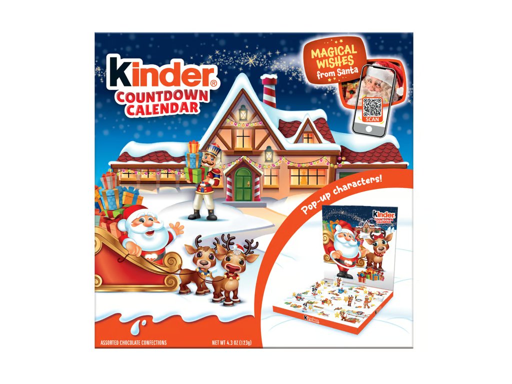 Kinder Pop-up Countdown Calendar obsahuje 24 oken s pamlsky a QR kódem, který mohou rodiče použít k vytvoření