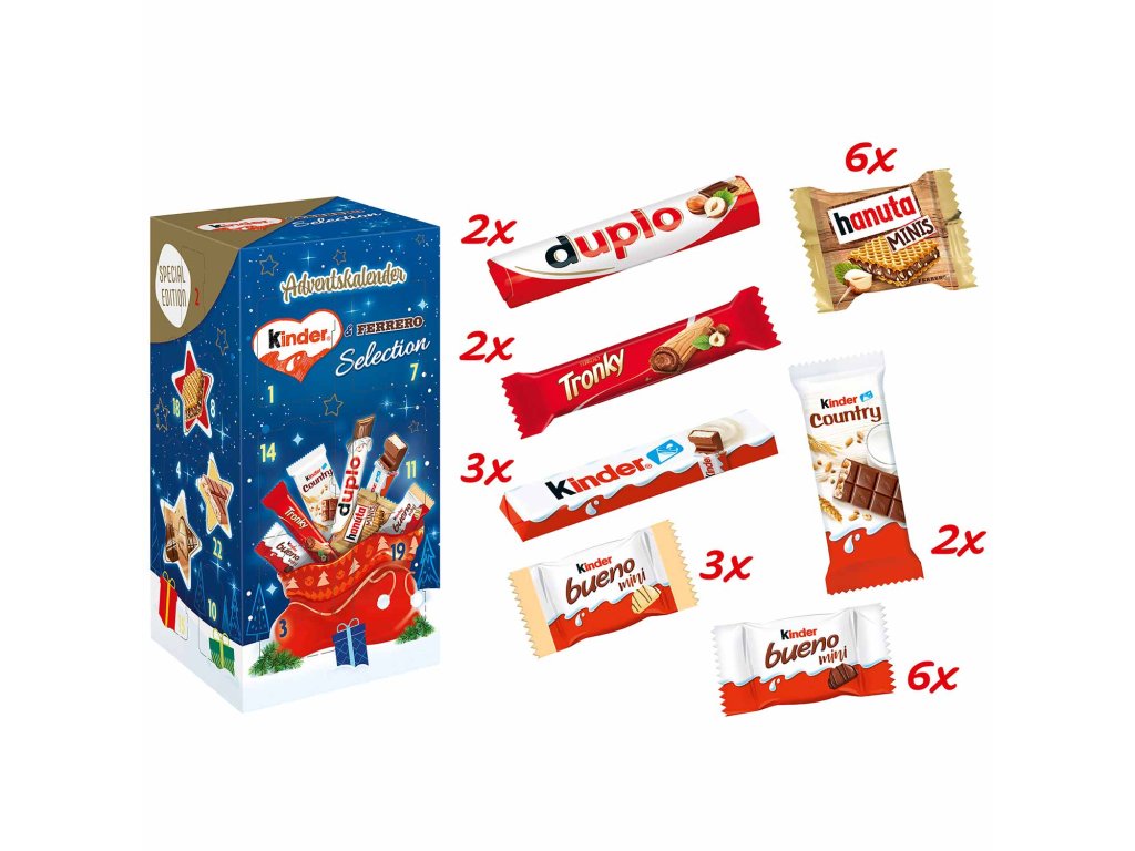 Velký kalendář, který byl navržen s láskou, obsahuje pestrý výběr různých zajímavostí od značek Kinder a Ferrero. Těšte se na opravdové klasiky