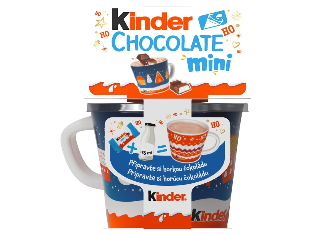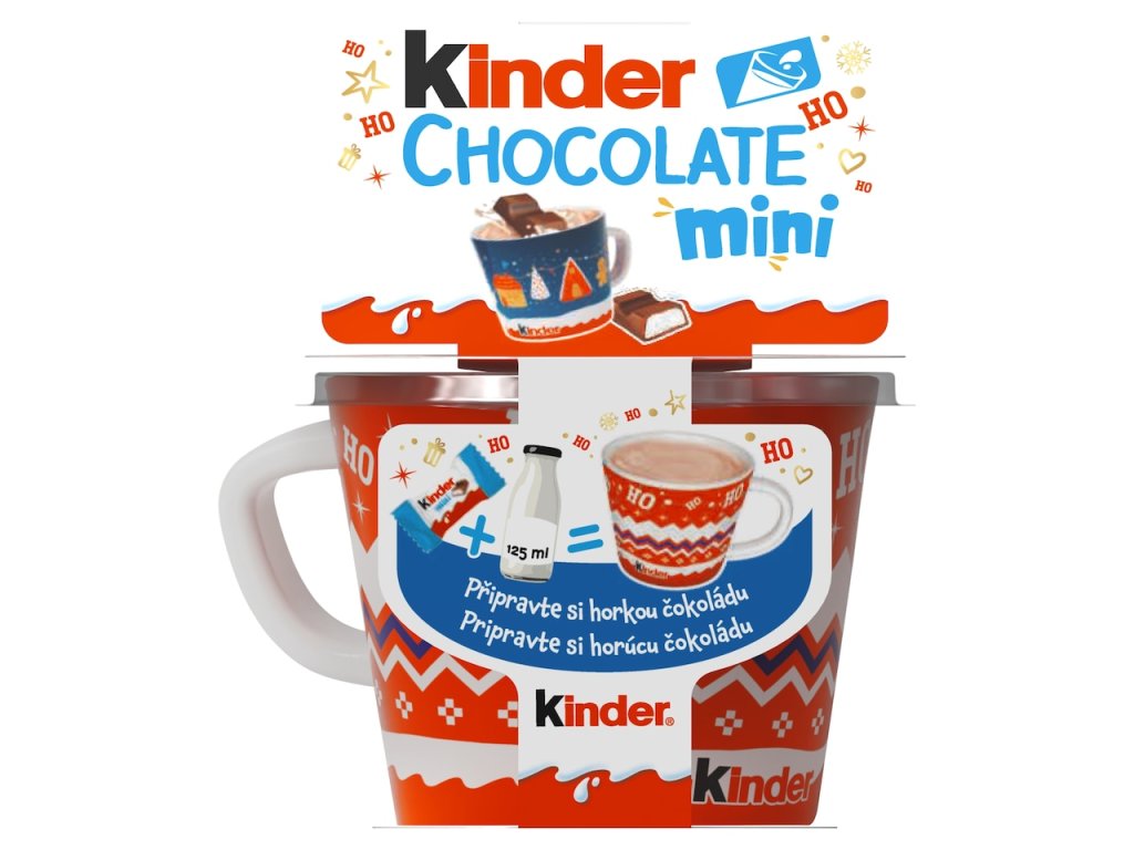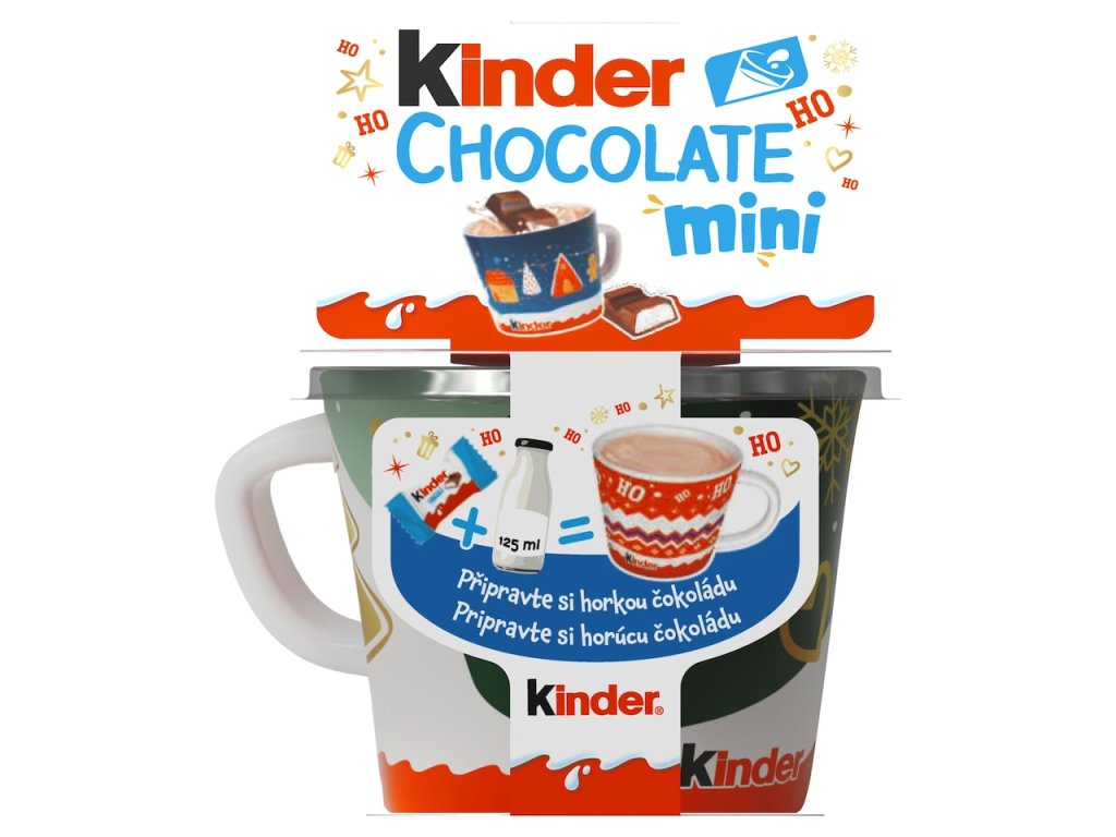 Originální keramický hrnek Kinder. Skvělý dárek ve vánočním období - k Mikuláši nebo přímo pod stromeček. Hrníček má objem cca 150 ml. Je jej možno umývat v myčce a ohřívat v mikrovlnné troubě. Balení obsahuje i 16x Kinder Chocolate mini. Tip: rozpustťe Kinder Chocolate mini s trochou mléka (cca 125 ml) pro příjemné chvíle.