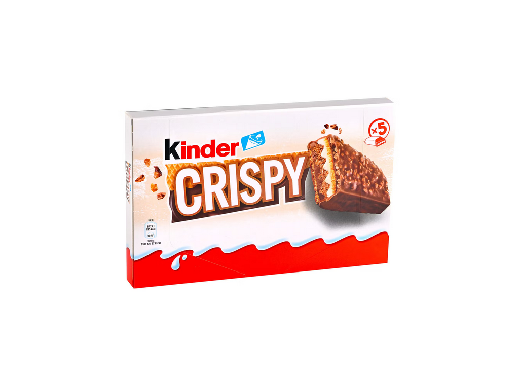 Křupavá pochoutka s jemnou krémovou náplní. Kinder Crispy kombinuje lehkou, křupavou oplatku se třemi lahodnými vrstvami lískovo-oříškového krému z odstředěného mléka, mléčného krému a lískovo-oříškového krému. Obalená v jemné mléčné čokoládě vytváří harmonickou souhru křupavosti a krémovosti. Ideální svačinka pro každého, kdo miluje typickou chuť kinder s extra křupavou náplní – ideální pro rychlé sousto nebo na sdílení!