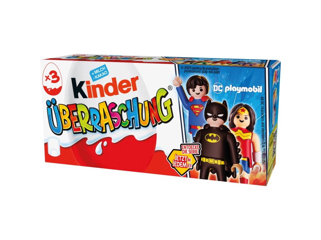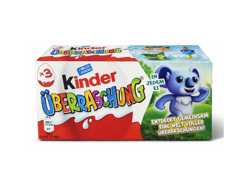 Originální balení 3ks Kinder vajíček s překvapením s hračkou pro kluky uvnitř. Baleno v praktické papírové krabičce. Balení obsahuje 3 vajíčka po 20g.