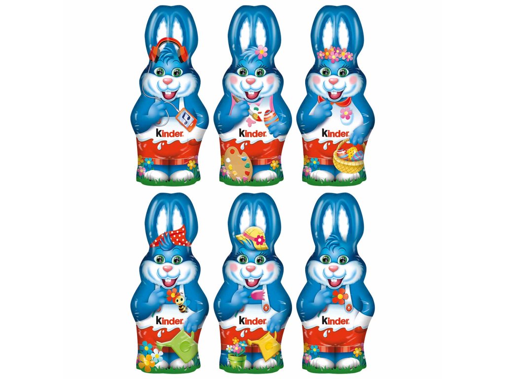 Velikonoce bez Kinder zajíčka by nebyly to pravé. Lahodnou mléčnou čokoládu s vrstvou jemného mléčného krému zná snad každé dítě. Navíc je zajíček zabalený do barevné fólie, která ozvláštní každou velikonoční nadílku. Dutá figurka je cca 18 cm vysoká. Motiv je vybírán z logistických důvodů náhodně.