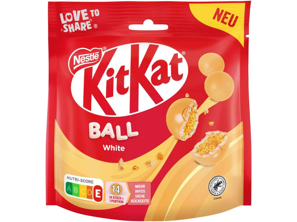 Křupavý požitek ve tvaru kuličky. KitKat Balls White spojují křupavé pšeničné cereálie s jemnou bílou tukovou glazurou a povlakem krémové bílé čokolády. Venku jemná a sladká, uvnitř nádherně křupavá – tak vzniká harmonický chuťový zážitek.