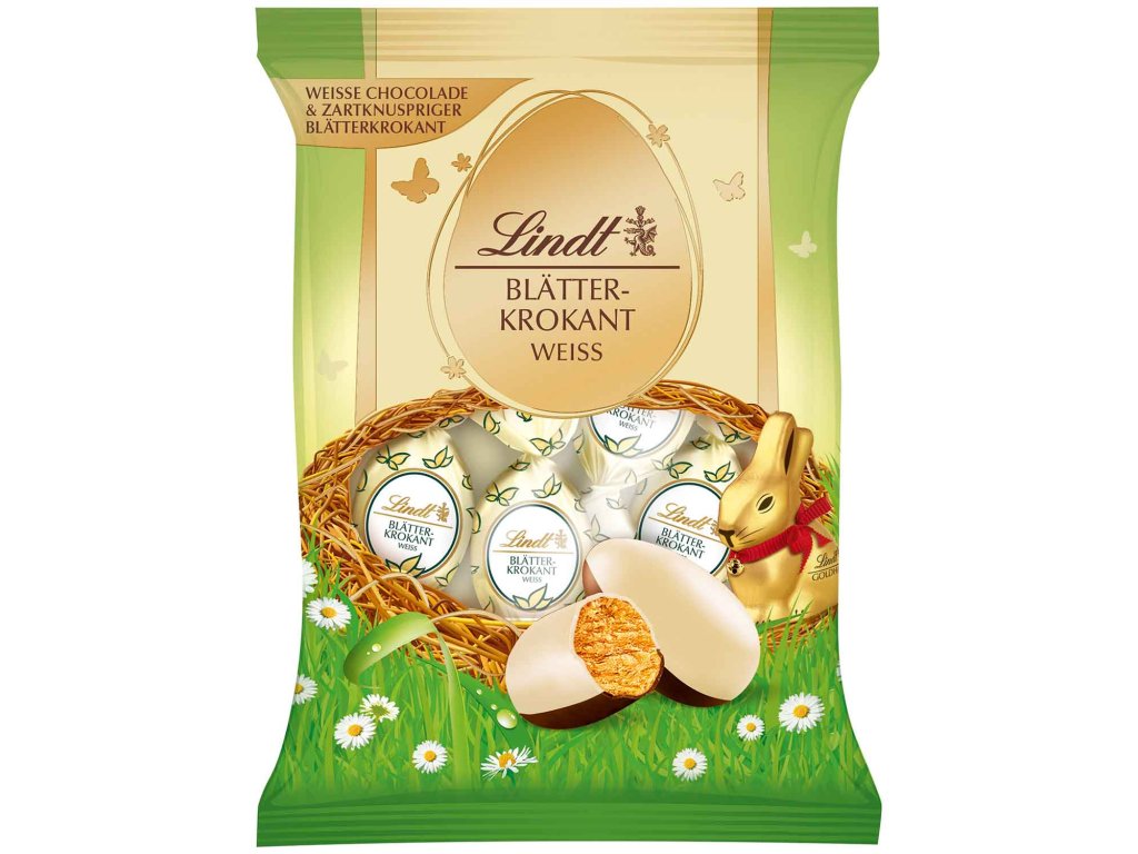 Lindt Vločková čokoládová vajíčka v bílé a hořké čokoládě kombinují dva klasické druhy čokolády se sofistikovanou náplní. Kombinace jemné bílé čokolády s jemně mletými mandlemi a bohaté hořké čokolády s kousky lískových oříšků se vyznačuje křupavým středem z nadýchané čokolády pro lahodnou křupavost. Harmonická směs sladkého, oříškového a křupavého – ideální na Velikonoce nebo jako malá pochoutka kdykoli. Tato elegantní kombinace dělá z těchto vajíček ozdobu každého velikonočního košíku.