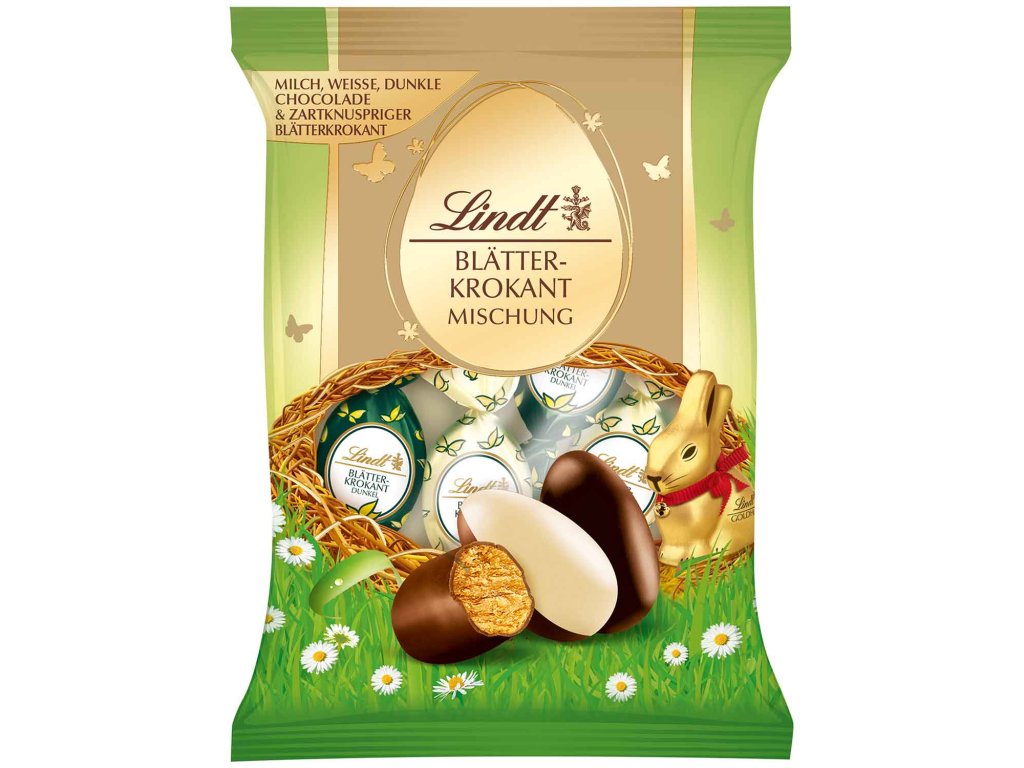 Lindt Blätterkrokant-vajíčka v mléčné a bílé čokoládě 85g