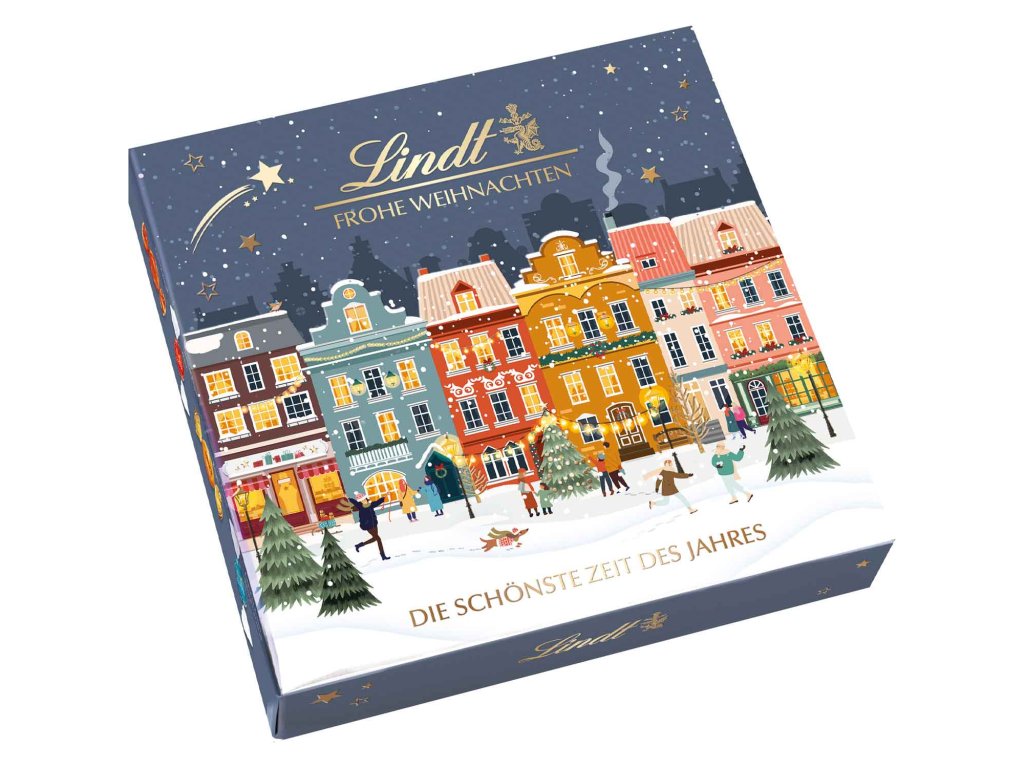 Krásně navržené balení ve tvaru zimního domečku obsahuje různé kuličky z oblíbené řady Lindt a Lindor – včetně kuliček Lindor,