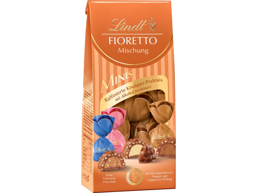 Skvělý mix pro všechny požitkáře. V této vybrané směsi najdete nejoblíbenější trio kolekce Lindt Fioretto. Vychutnejte si rafinované Pralinky, které svádějí trojitými náplněmi. Nougat, marcipánový dezert a cappuccino smetanový krém vám poskytnou nejvyšší požitek. Obalují se do nádherné nejjemnější plnotučné mléčné čokolády, která byla zjemněna křupavým crispem.