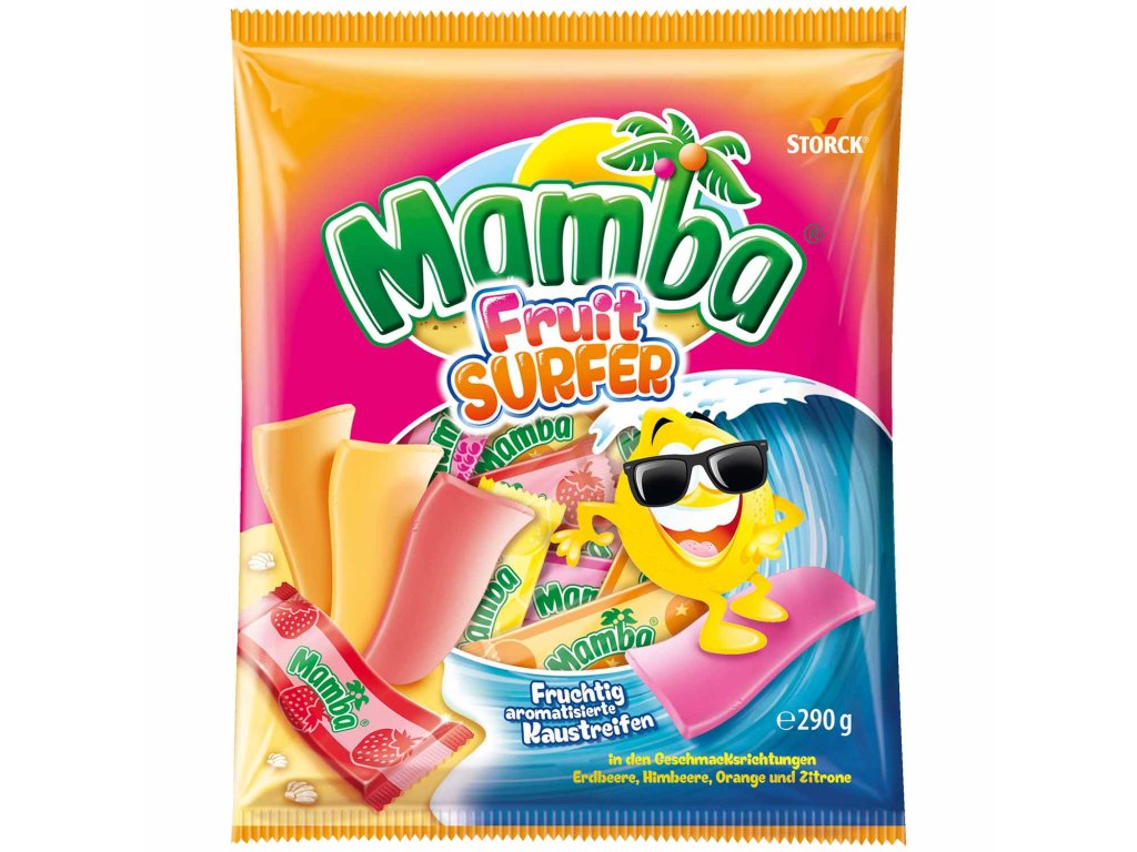 Na vlně dobré chuti! S lahodným Mamba Fruit Surferem zažijete letní žvýkací požitek, který potěší všechny mlsouny. Ovocné žvýkací proužky se dodávají ve 4 různých příchutích: jahoda, malina, pomeranč a citron, což představuje neodolatelnou změnu.