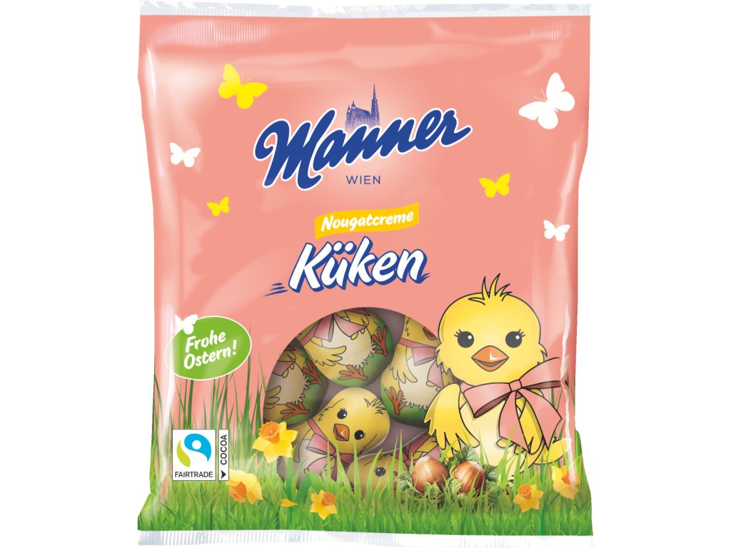 Manner Chicks svádí jemnou mléčnou čokoládou (s kakaem si samy praží) a potěší lahodnou nugátovou krémovou náplní.