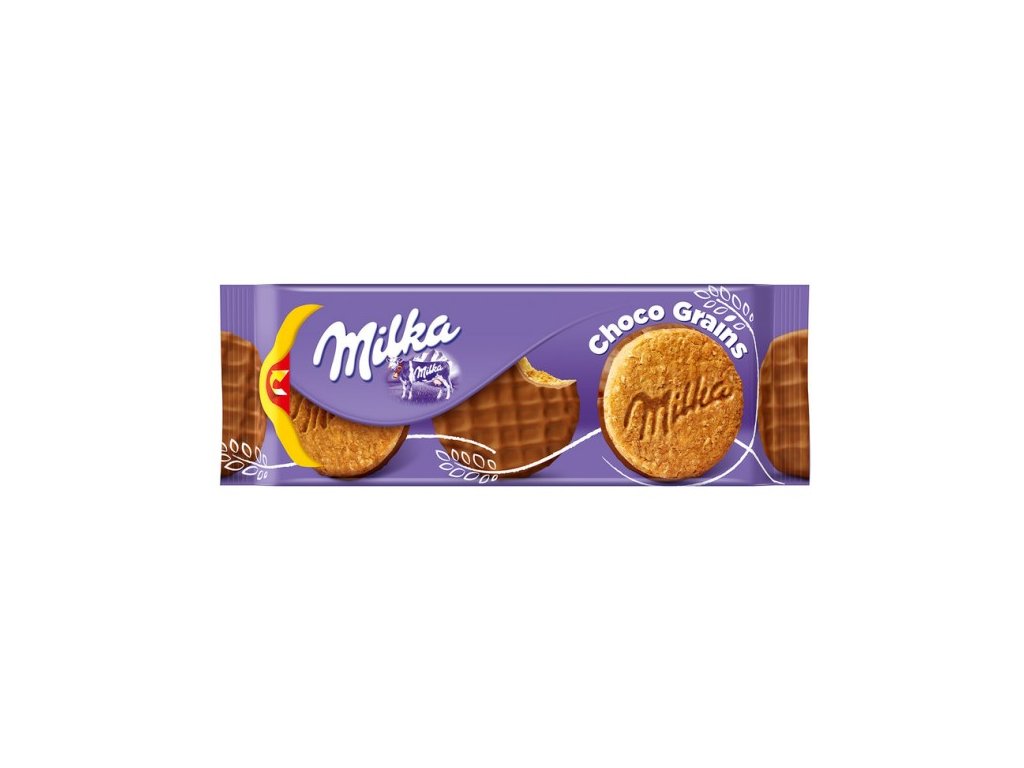 Milka Choco Grains sušenky 126g - s ovesnými vločkami, celozrnnou pšeničnou moukou v mléčné čokoládě z alpského mléka
