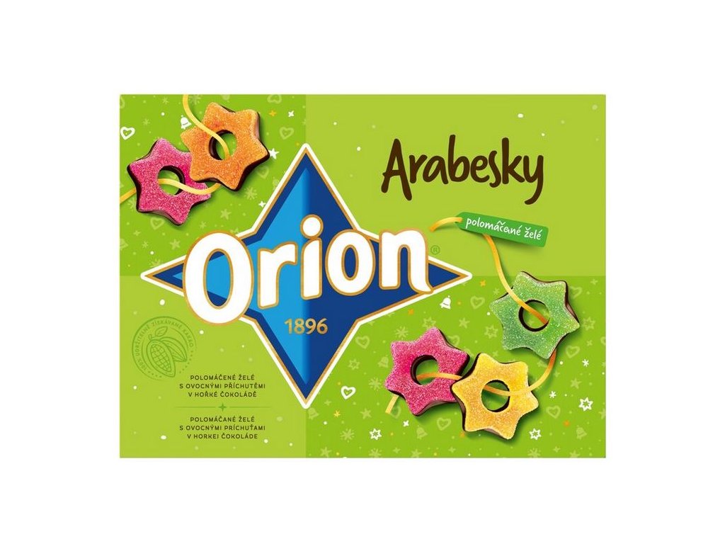Užijte si sváteční chvíle s rodinou a udělejte si radost Orion Arabeskami. Vychutnejte si želé s ovocnými příchutěmi polomáčené v hořké čokoládě.