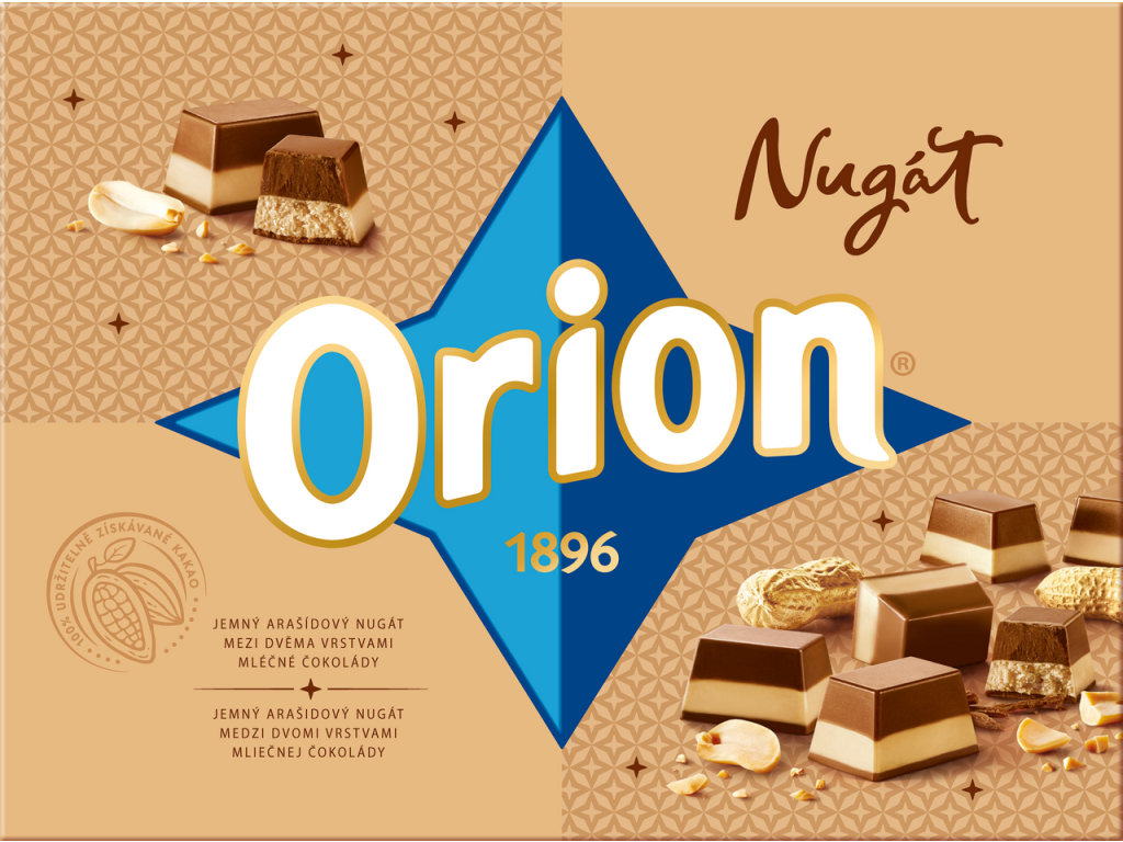 Arašídový nugát 44% a mléčná čokoláda 56%.