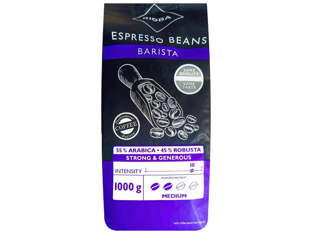 zrnková káva • bal.: 1 kg • cena za 1 kg ( u potravinářského zboží garantujeme minimální trvanlivost 6 měsíců) Kávu RIOBA odlišuje od ostatních typů káv dostupných na českém trhu především způsob pražení. To se odehrává ve specializovaném zá- vodě s více než stoletou tradicí v italském přístavním městě Janov. Jedná se o takzvané italské pražení, které je provedeno do stupně „dark“. Výsledná chuť je díky němu více kořeněná a obsahuje unikátní čokoládový tón, přičemž aroma je potlačeno na úkor pociťované sladkosti. Nejmodernější technologie a systém kontroly kvality pak zajišťují, že tuto jedinečnou chuť obsahuje každé zrnko kávy RIOBA