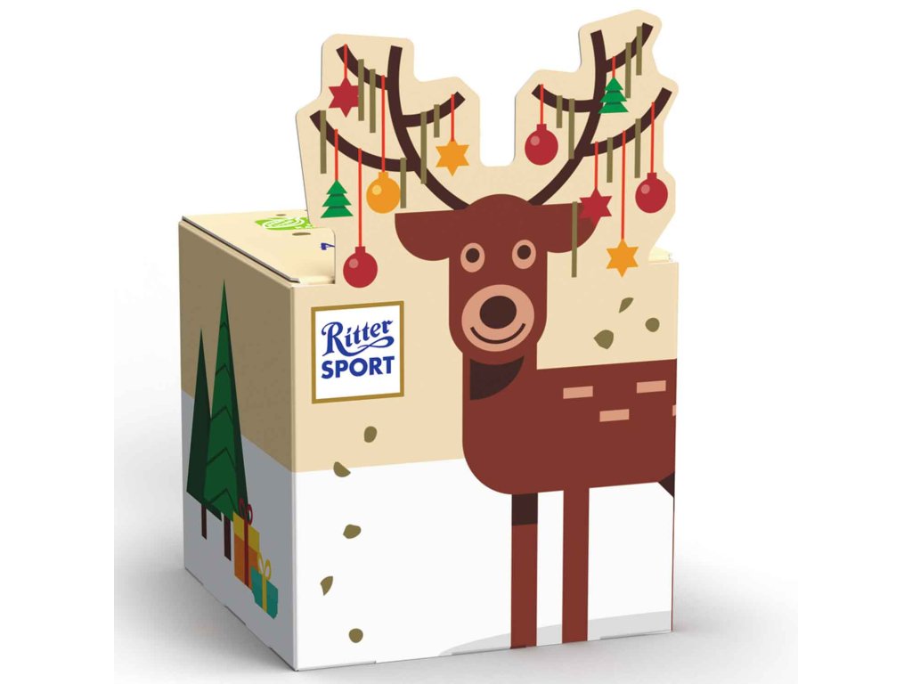 Vánoce na náměstí. Sobí kostka Ritter Sport je skvělý tip na vánoční dárek. Na kostce s vánoční tématikou je roztomilý
